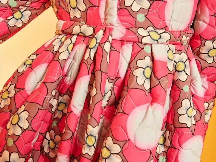 Designed collection of warm Autumn Winter prints, featuring lots of florals and geometric florals. Featured on main character Jessica in Lena Dunham Netflix series, Too Much.